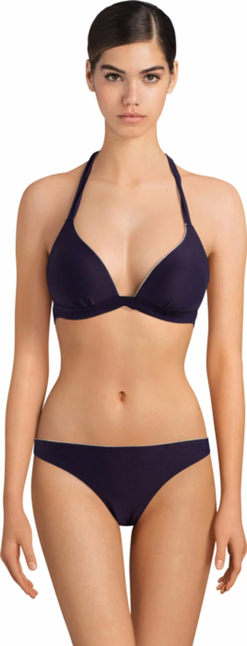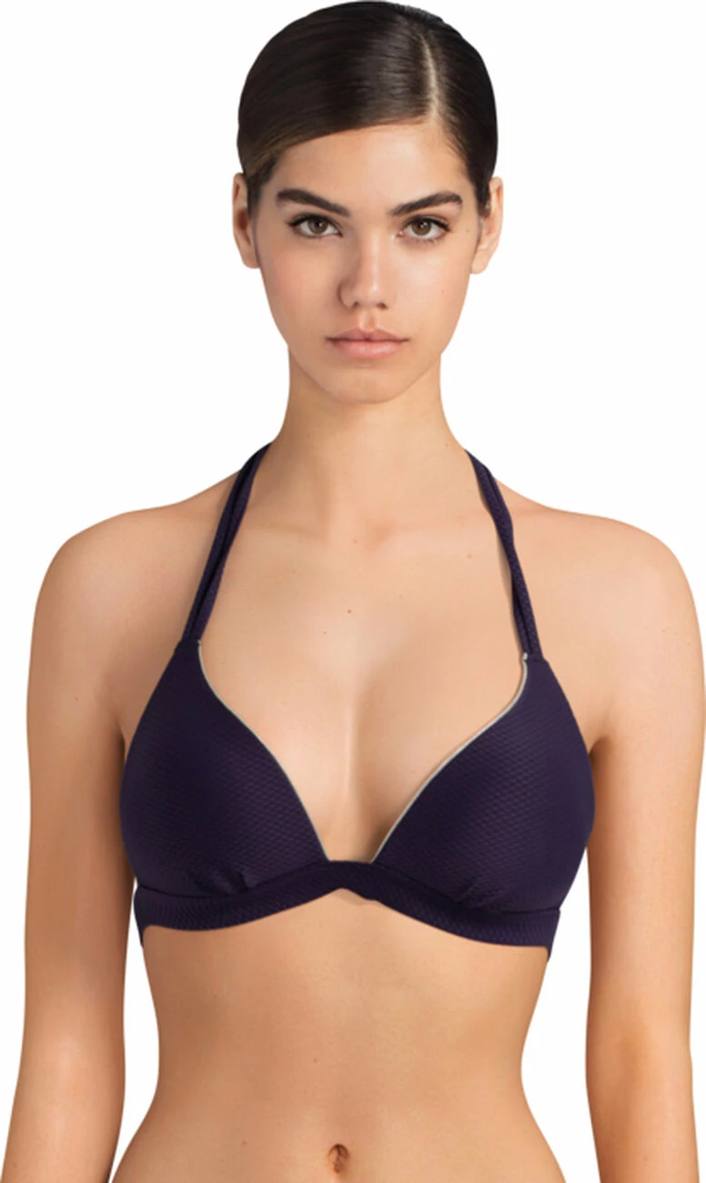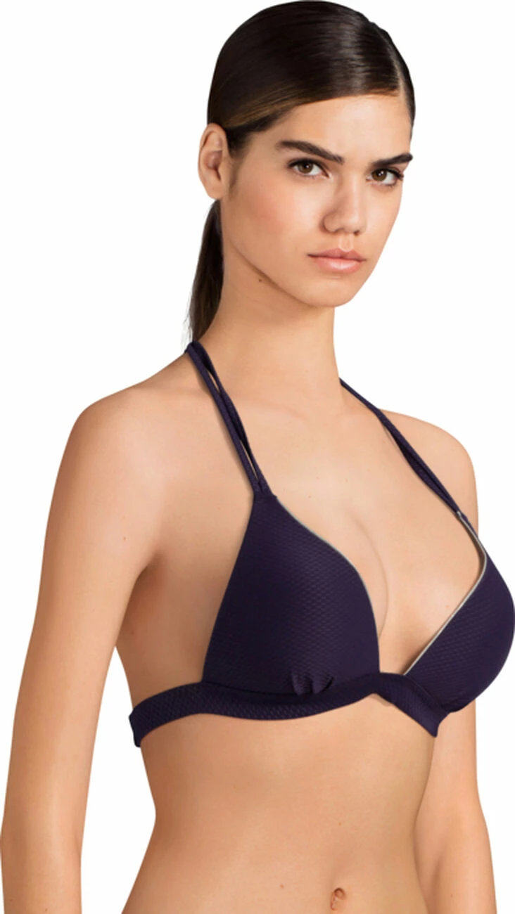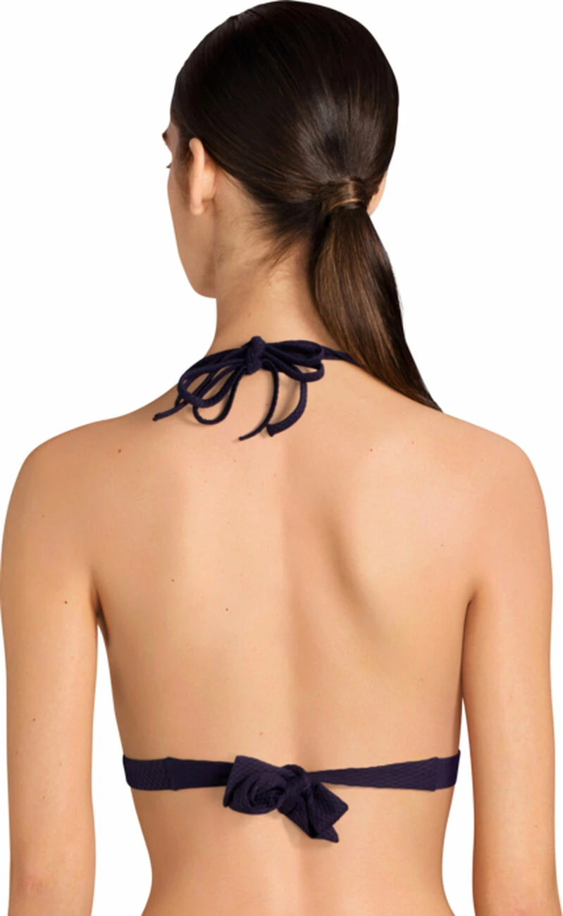 Ce triangle flatte subtilement votre poitrine avec ses bonnets paddés qui dessinent et galbent le décolleté. Il vous assure un très bon maintien grâce à ses nouages dos et tour de cou ajustables à votre convenance.